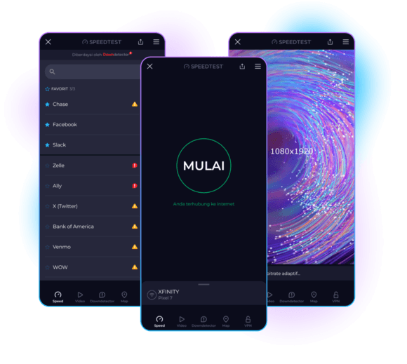 Kami di Speedtest by Ookla® memiliki misi untuk menjadikan internet lebih cepat dengan menyediakan data dan analisis tentang kecepatan internet di dunia nyata. Dengan miliaran pengujian secara global, kami hadir di tempat Anda berada untuk perangkat yang paling sering Anda gunakan.